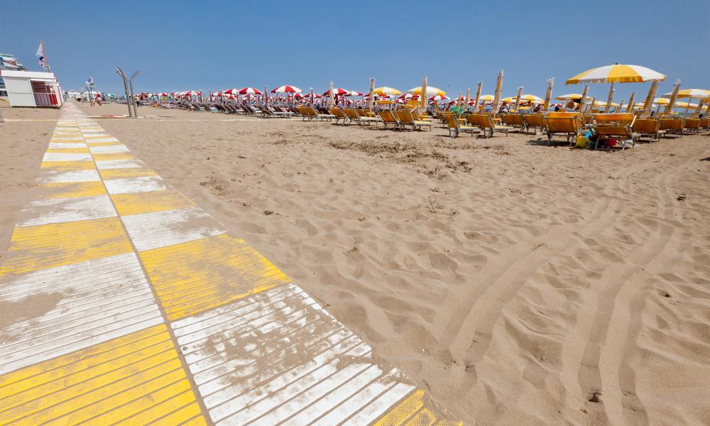 Caorle má více než 15 km dlouhé pobřeží rozdělené na dvě hlavní části – Spiaggia di Levante (východní pláž) a Spiaggia di Ponente (západní pláž). Obě jsou široké, s jemným zlatým pískem a pozvolným vstupem do moře, což zajišťuje bezpečí pro děti i méně zkušené plavce.