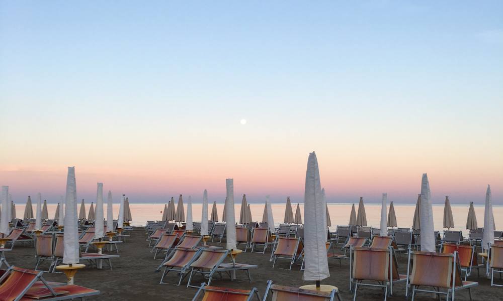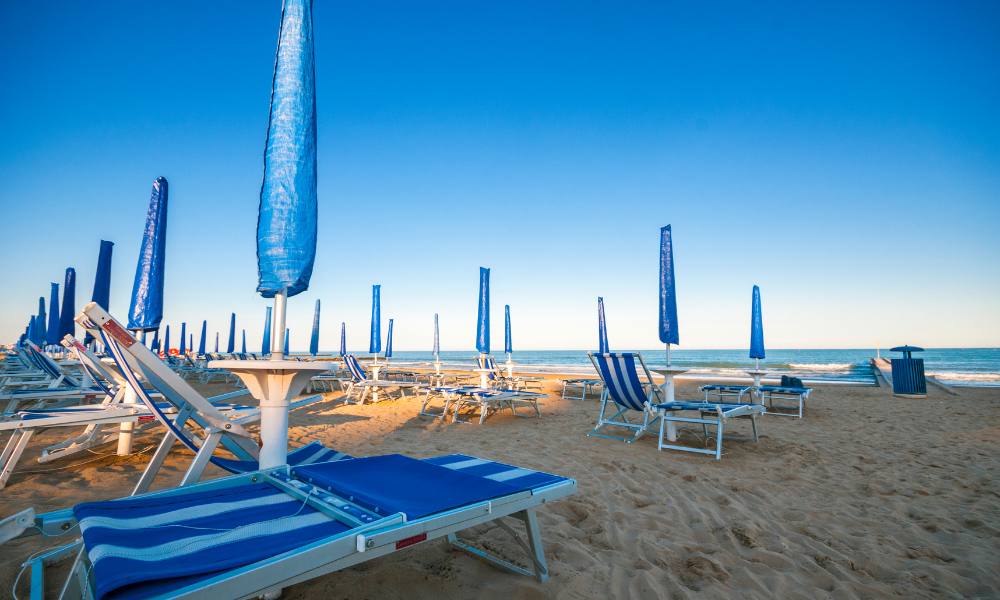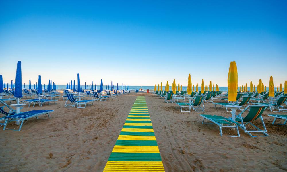 Pláž v Jesolu je 15 km dlouhá, písčitá a velmi široká – jedna z nejdelších v Itálii.
